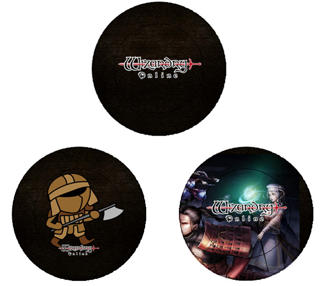 オンラインRPG「Wizardry Online」のロゴやデフォルメされたキャラクターなどがデザインされたオリジナルの缶バッジを3種類セットでプレゼントします。