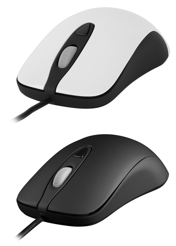 左右メインボタンとセンタークリック機能付きスクロールホイール,CPI設定用ボタンのみを備える,シンプルなゲーマー向けマウスです。本体カラーは白と黒の2種で,白は光沢のあるボディ,黒はラバーコートが施されたボディとなっています(関連記事)。
