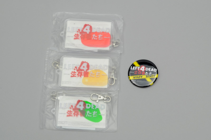 12月10日に稼働開始したアーケードゲーム「LEFT 4 DEAD -生存者たち-」のオリジナル缶バッジ(直径約5.5cm)と,中に液体が入ったオリジナルリキッドカードケースのセットです。