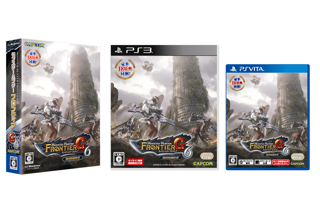 2014年11月に実施された大型アップデート“G6”に対応した「モンスターハンター フロンティアG」のクライアントパッケージです。ハンマーや双剣などのハンター用武器,パートニャーの武具,剛種チケット100枚といった18種の特典が付属しています。G6では,謎の塔“天廊”や新モンスター・ポボルバルムなどが追加されました(関連記事)。
