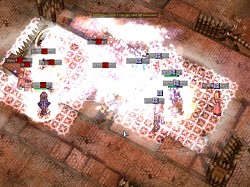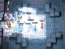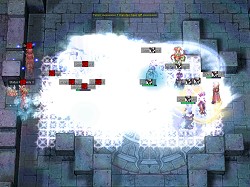 なおこの2試合は,魔法などのエフェクトをオフにしての配信となっていた。ROの対人戦に詳しいプレイヤーであればご存じだと思うが,対戦中は範囲系のエフェクトがとにかく激しく,とくに今回のように解像度が高いとは言えないUstreamのライブでは,何が起こっているのか判断しづらい絵図らになりやすい。それらを改善するための措置なのだが,キャラクターはハッキリ見えるものの,スキルのほとんどが表示されないため,画像が少し寂しい感じになっていた。なお,掲載している画像は,しっかりとエフェクトが入っているものなのでご安心(?)を。