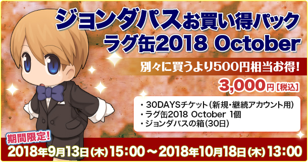 「RO」,新アイテム4種が登場する「ラグ缶2018 October」が9月13日に実装