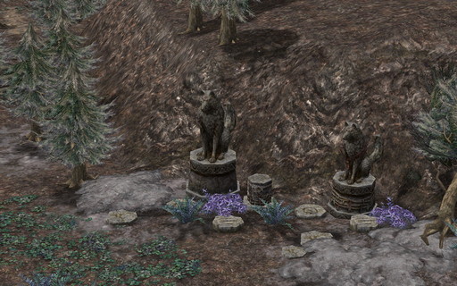 そのほかにダンジョンとフィールドが1つずつ追加されます。フィールドは「灰色狼の森」という名で,狼の像があります。ここには移住してきた人たちが住んでいるという設定の村となります。