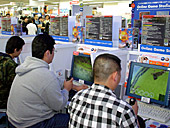 先日からお伝えしていた,メディアカイトのコンバットフライトシミュレーションゲーム「Fighter Ace」によるゲームイベント"Fighter Ace 〜Air Battle in AsoBitCity〜"が,秋葉原アソビットシティ6Fのオンラインゲームスタジアムにおいて開催された。 参加ゲーマー達の熱い思いが届いたのか,昨日からの雨も昼前には上がり,気温もぐんぐん上昇。午後1時のイベント開始30分前には,希望者多数のため参加申し込みを締め切ってしまうという盛況ぶり。ゲーム開始前の簡単なアンケートによれば,参加20名の内のほとんどが,本日始めて「Fighter Ace」をプレイするという人達ということもあってか,いまだイベント開始にはたっぷり時間もあるというのに,すでに参加者達は各自テーブルについて,練習に余念がないといったところ。 午後1時になり,いよいよイベントの開始。簡単にゲームの説明などが終わり,本日のメインイベントである,日米決戦が行われることに。 今回の対戦は,参加者20名を日本軍チームとアメリカ軍チームの2チームに分けての団体戦。撃墜数・被撃墜数・アシスト数などを加味し,最終的にポイントの高いチームの勝利となる。なお,チームこそ日本とアメリカに分けられているが,搭乗する機体は,5か国・96機種の中から自由に選択可能ということで,みな思い思いに機種選択を行っていた。 司会進行役のメディアカイト岡野氏のカウントダウンで対戦がスタート。対戦に選ばれたマップは「Bowl」という"すり鉢"状のマップで,まるでローマのコロッセオの中で戦っているかのような雰囲気が漂う。 「Fighter Ace」をプレイするのが初めてという人が多いので,派手なドッグファイトはないかな,と思っていた筆者の予想を裏切り,最初から熱い空中戦となった。感心したのは,みな一様に飛行機の操縦が上手なことで,右へ左へ,ひらりひらりと機体を操っては,敵機に銃弾を浴びせ撃墜していくさまは,イベントの開始を知って集まってきた多くのギャラリー達を引きつけていた。 最初から優勢に勝負を進めていく日本軍チーム。このまま逃げ切るかに見えたが,中盤を過ぎる頃からアメリカ軍チームが猛攻をかけ,あわや逆転勝利か!? しかし対戦を終えてみれば"日本軍:3万3842ポイント対アメリカ軍:2万1533ポイント"と,1万ポイント以上の差をつけ,序版から確実にポイントを獲得していた日本軍チームの勝利となった。 優勝した日本軍チームに参加していたゲーマーには,メディアカイトのPCゲームが贈られ,アメリカ軍チームにも参加賞がプレゼントされる。そして両チームから抽選で選ばれた1名が,GeForce4 Ti4200ビデオカードをゲットした。 上級者はもちろん初心者にもやさしいコンバットフライトシムが「Fighter Ace」だ。体験版が「こちら」からダウンロードできるようになっているので,フライトゲームは難しいからと敬遠していたような人達にこそ,ぜひともプレイしてもらいたい。(Asakura)