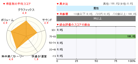 グラフィックス サウンド 快適さ/運営 熱中度/ストーリー ボリューム 4 3 1 4 4