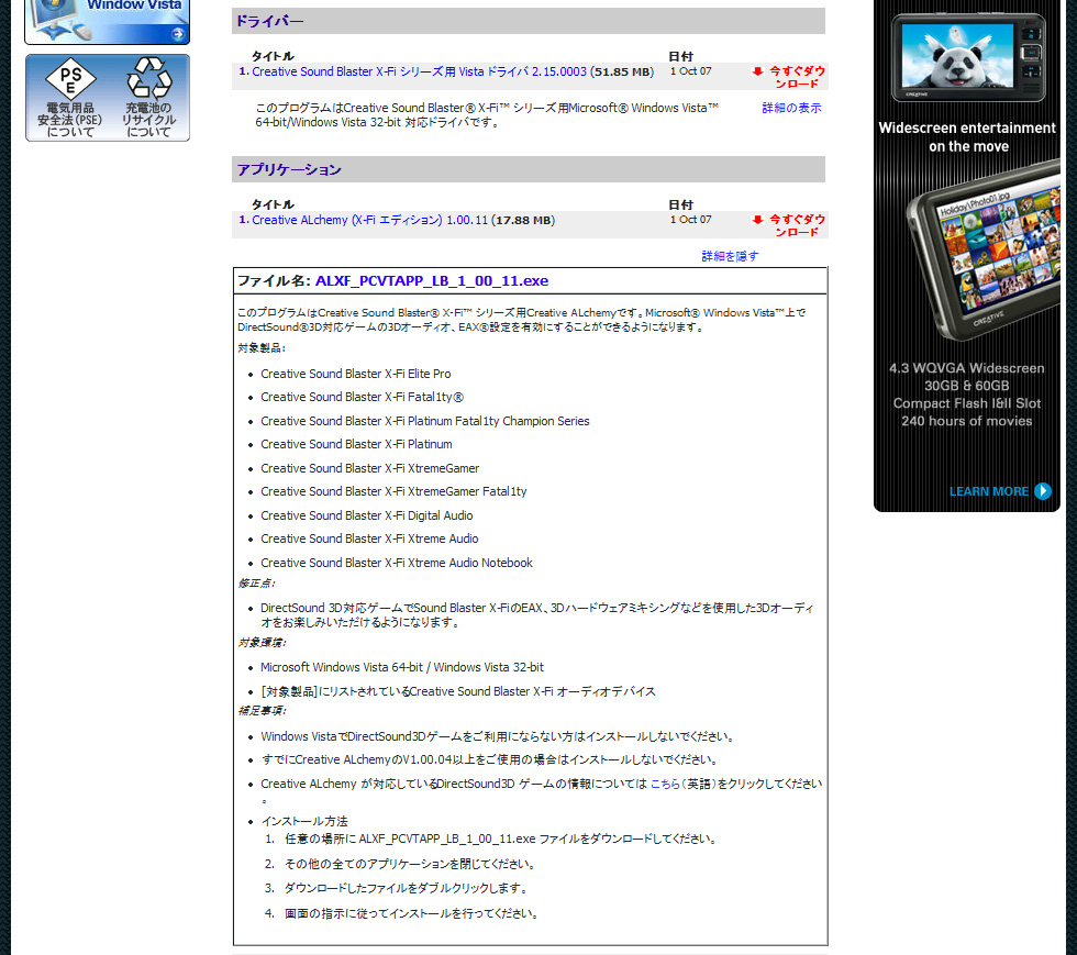 Creative,Vista用のSound Blaster X-Fiドライバ&ALchemy最新版を公開