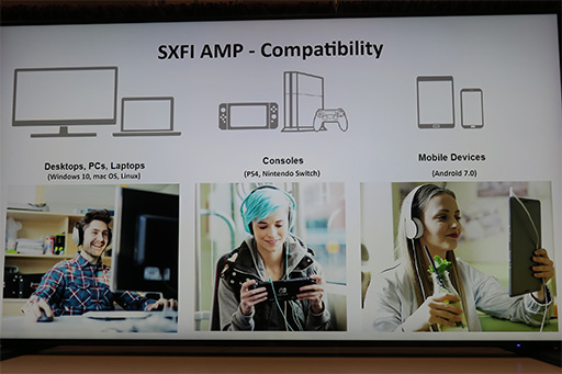 逆に言うと,ユーザー固有のプロファイルがない状態では,Super X-Fiの実力は発揮できない。筆者は,Creativeブースでデモの開始を待っている間に展示してあったSXFI AMPを試してみようとしたのだが,説明員から「だめだめ。君のプロファイルが入っていないSXFI AMPでは,正しい体験が得られないから無駄だよ」と制止されてしまったくらいだ。