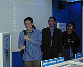 2002年10月10日から行われていた「三國志 Battlefield」の"対戦ゲーム大会"は,本日(10月12日)をもって無事に終了した。 イベント最終日である本日は,土曜日ということもあり,前日までに比べても多くの参加者/見学者が訪れており,会場であるラオックス アソビットシティ6階の特設フロアに人が溢れかえっていた。あまりの盛況ぶりに,ちょっとPCゲームで遊ぶとは思いにくいかなり高齢な女性なども「この人だかりは何事?」とばかりについ立ち止まって見ていたほどである(PCゲームを扱っているアソビットシティの6階にいるだけに,彼女が筋金入りのPCゲーマーである可能性も否定できないが)。 イベント最終日を締めくくる最後の戦いは,あらかじめコーエーのゲームサイト「GAMECITY」で登録したエキスパートによる"同盟戦"。前日までで長引いていた試合時間を考慮して,ゲーム時間"6年"の1回戦勝負(告知では2回戦行う予定だった)となった。 ところが,である。さすがエキスパート同士の戦いというか,なんとものの15分程で試合が終了してしまったのだ。 ちなみにこの時は「皇帝割拠」というシナリオを使っており,三国志の英雄達にチンギス・ハーンや始皇帝,項羽や劉邦といった中国の歴史上の偉人達が入り交じって戦っていたのだが,曹操,劉邦,李世民(りせいみん)チームが,あっという間にほかのチームを滅ぼしてしまったわけ。そのため急遽予定を変更して,余った時間を使い,ゲーム時間"5年"でゲームスピードを"速い"にして,1回戦限りの"乱戦"を行うことに。結果的に参加者にも見学者にも嬉しいハプニングとなったわけだ。 このオマケの第2回戦は,さすがに参加者達も緊張が解けていて,楽しいチャットメッセージが行き交う戦いとなった。ちょっと目に付いただけでも, 「同盟を断ったやつから滅ぼす!」 「辺境地すぎ!」 「エンショウ兄さん,敵を討ってくれ」 「なめたまねをしやがってw」(←一応解説。「w」は"笑い"の意味。以下同) 「裏切ったむくいを受けさせてやるw」 「ふん,たわいないw」 とまぁ,こんな感じである。傍から見ていても,"大会"というよりは仲間内のゲームのような楽しそうな雰囲気だった。 この2回戦は制限時間いっぱいまで続き,結局,孔融を担当していたプレイヤーの優勝。こうして長い戦いの,そして3日に渡って行われたイベントの幕は閉じた。 今回司会を担当していたコーエーの松原健二氏は,最後に「今後もここ(アソビットシティ)でこういったイベントを行っていきたいと思います。何か要望などあれば,GAMECITYの掲示板などで意見を寄せてください」と語り,締めくくった。 そういえば,「ここ」で紹介したように,明日(10月13日)からはアソビットシティで「ウォークラフトIII」のイベントが行われるし,その後もいろいろと予定されているようだ。今後アソビットシティは,PCゲームユーザーにとって"必訪の地"となるかもしれない。(Iwahama)