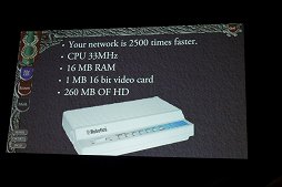 1995年,当時のUltima Onlineは,Origin Systems内で「Multima」というコードネームと呼ばれていた。もともとは,MUD(Multi-User Dungeonと呼ばれた,テキストで進めていくオンラインゲーム)のクリエイター出身だったコスター氏が想起した,「Ultima IVをマルチプレイ化させた,グラフィックスのあるMUDゲーム」というコンセプトでスタートしたという。当時のハイエンドPCと言えば,「CPU性能は今より1000分の1の33MHz,メモリも1000分の1の16MB,ビデオカードは8000分の1ほどしかない1MB(16ビット)で,HDDは260MBで,今の携帯電話のほうが遥かに大容量」だったとロング氏はジョークを飛ばしていた。