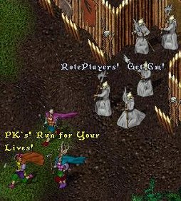 コスター氏が言うには,Ultima Onlineの問題点のほぼすべては,PK(プレイヤーキリング)が許されたオープンデザインになっていたことだ。7回にわたって戦闘システムは見直されたが,その1つとして導入されたバウンティボードのシステムなどは,PKer(プレイヤーキラー)達が自分の悪名を自慢するリーダーズボード程度にしか扱われなかった。ただ,ギャリオット氏は「私にUO時代の良い思い出として話しかけてくるファンのネタは,大概はチートやPKにまつわるもの」らしい。