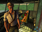 イギリスのRevolution Studios社によって開発中のアドベンチャーゲーム「Broken Sword:The Sleeping Dragon」のプレイアブル版が,ECTSにて公開されていた。 本作は,アメリカ人旅行者のジョージ・ストボードがコンゴで飛行機墜落事故に巻き込まれたところから物語が始まる。気を失ったパイロットを救出し,生き残った乗客達と会話をするというのが序盤の展開。その後フランスのジャーナリストであるニコ・コラードと出会い,プレイヤーはジョージとニコの2人を使い分けながら,パズルを解いたり事件の真相に迫っていく。ゲームでつまずいてもヒントが出されるようになっているなど,ライトユーザーを意識したゲーム作りも行われている。 顔のアニメーションが豊富なのが特徴的で,見ていた限りでは無限にあるように思えるほど。リップシンク(声と口の動きの同期を取る技術)ともうまくマッチしているが,この声を担当しているのは,7年前にリリースされた前作「Broken Sword 2:The Smoking Mirror」と同じ声優だというから,前作を知るファンにとっては憎いまでの気遣いだといえる。 デモをチェックしていた範囲での感触だが,ゲーム中に用意されているアニメーションの量は非常に豊富な様子だ。例えば先述のパイロットにはボトルの水(ビールかも)をかけて目覚めてもらう必要があるのだが,そのボトルを開けるにはボトルオープナーというアイテムが必要になる。しかしそこへ試しにほかのオブジェクトを使用してみると,そのオブジェクトで試行錯誤するアニメーションが用意されているといった具合。開発元のRevolution Software社は,このゲームエンジンをVirtual Actorエンジンと名付けているほどなので,アニメーションや表情による表現には,よほどの自信があるのだろう。 ゲーム自体は,古典的なアドベンチャーゲームの真髄を見せつけるかのように,歩いて場所を探索するほか,時にはぶら下がったり箱を動かして高いところ登ったり,あるいはガードマンの気をそらすように仕向けるなど,パズル的な要素を絡めながら進行していく。探索システムはアイテムにカーソルを合わせて複数のアイコンを引き出す方式で,聞いたところゲームパッドでの操作を念頭においているらしいが,キーボードとマウスでも難なくプレイできるのは好感触。決して新しい要素が満載された作品とは言えないものの,この手のジャンルのファンでにとって期待できる作品になるのは間違いないだろう。(奥谷海人)