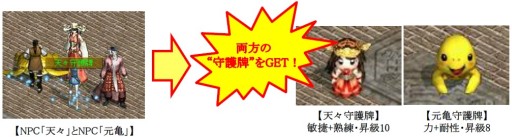 11周年記念イベント「亀午天神」は、期間中に指定のNPCに話しかけるだけで、「天々守護牌」と「元亀守護牌」の2つの守護牌がもれなく全員にプレゼントされるものや、期間中に何度でも利用でき、アイテムを何度でも手に入れることができる「魔法のランプ」の登場といった、今までのイベント・キャンペーンとは一味違う5つのイベント・キャンペーンを開催します!