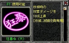 | 「影武者逆天符(特)」、「影武者逆天符(普)」、「影武者量々符」、「影武者大黒符」、「銀銭復活符」、「影武者神薬(特)」、「影武者神薬(普)」、「影武者神水(特)」、「影武者神水(普)」 |