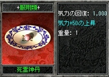 | 「剛神技」、「吸神技」、「上昇神技」、「自活丹」、「自内丹」、「換銭箱」 |