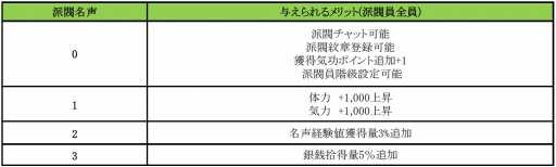 ※派閥名声にて得られるメリットは上記以外にも存在します。