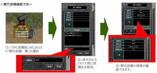 本日12月3日(水)メンテナンス後より、派閥に所属している「構成員」の役職の派閥員は全て派閥から強制的に退出され、派閥の新時代が到来します。「派閥革命」の新機能として、歴代の派閥情報をNPC派閥板より確認することができるようになります。