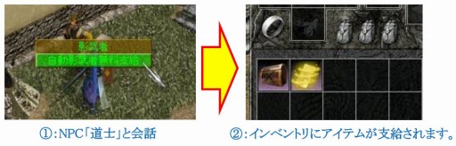 ・影武者システムの追加機能を利用できるアイテム「吸神技」、「上昇神技」を1日1回、NPC「道士」よりもらうことが可能。