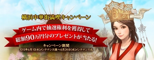 『新・天上碑』の世界観である中国武侠にちなんだ、豪華賞品や、ゲーム内のプレゼントといった中華を満喫できるキャンペーンを開催いたします。こちらは、期間中にモンスターを討伐すると一定の確率でドロップする「中華満喫応募券」を獲得すると、抽選で「横浜を満喫できる!HIS旅行券(15万円分)」や、「横浜中華街専用ギフトカード(3万円分)+HIS旅行券(2万円分)」など総額90万円分のプレゼントや、本イベントのために作成された新アイテム「中華丼」を手に入れることができます。