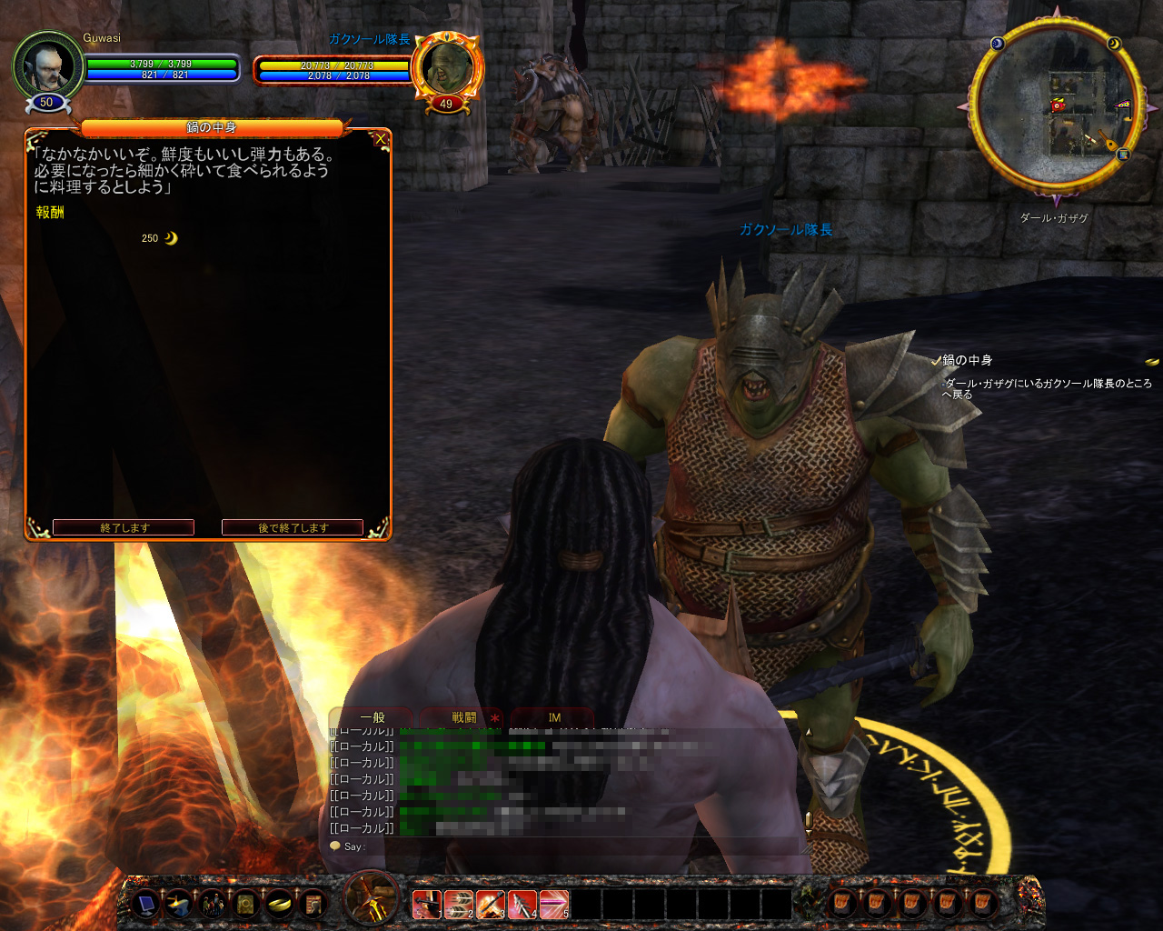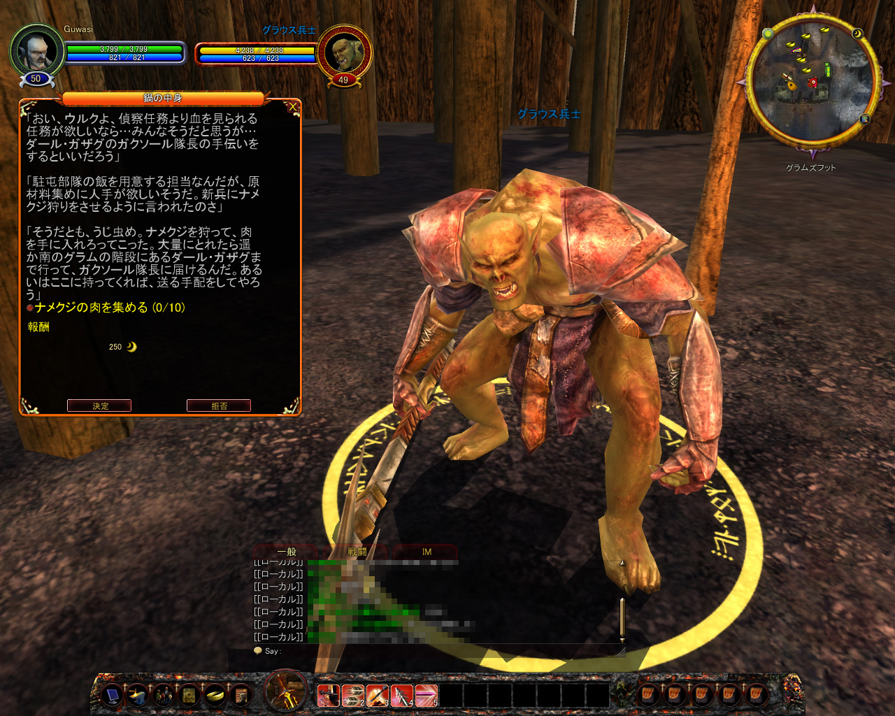 クエスト「鍋の中身」は,モンスタープレイヤーにとって最も簡単なクエストの一つだろう。モンスタープレイのスタート地点にいる,NPCのグラウス兵士から受けられるもので,ナメクジのモンスターを狩って,その肉をガクソール隊長のもとへ持っていくという内容だ。