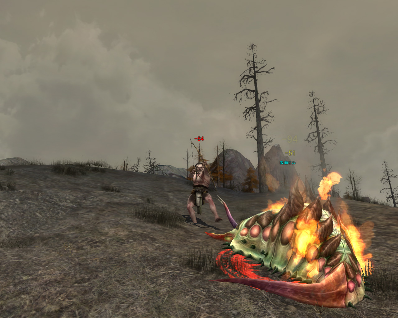 ナメクジは,スタート地点のグラムズフットの門を出てすぐ目の前の沼地にいる。たいして強くはないので狩るのは簡単だが,調子に乗って戦っているうちに2〜3匹に囲まれてしまったりすると面倒なので注意したい。