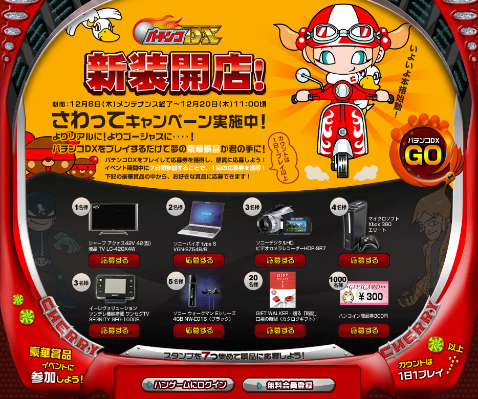 「ハンゲーム」,「パチンコDX」で豪華賞品が貰えるイベント開催