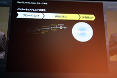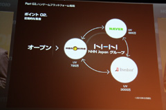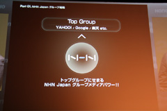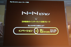 続いて,NHN Japanのミッションとビジョンが紹介された。森川氏は,同社の成長の核となったのは,NHN Japanが培ってきたソーシャルコミュニティであると述べ,さらにグループ内の連携を強化することにより,日本のインターネット環境にイノベーションを起こしていきたいと意気込みを語った。