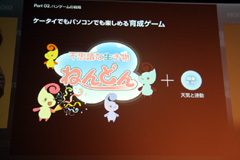 これだけだと「ふーん」といった感じだが,リアゲーではこうした演出をきちんとゲームに結びつけるそうだ。すでにサービス中のゲームにリアゲーの機能を組み込むことも可能で,会場では,育成ゲーム「ねんどん」(PC/モバイル)を例に説明がなされた。