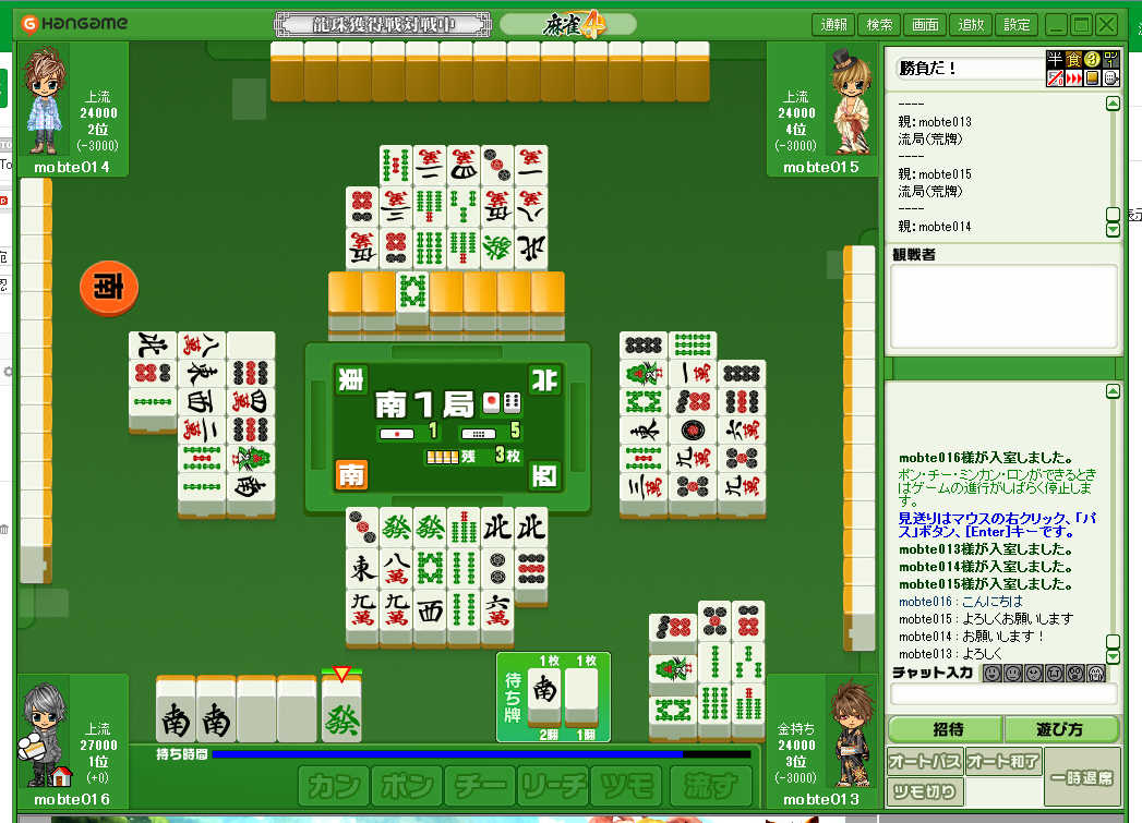 ハンゲームの「麻雀4」がリニューアル。対局生放送も配信決定