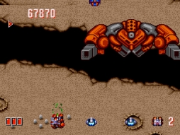 本作は1991年にリリースされたシューティングゲーム。プレイヤーはホバータンク“ギガイアス”を操作して、ショット(押しっぱなしで連射)、溜め撃ち、速度切り替え、アイテムなどを駆使しながら侵攻。最終的にはバイオコンピュータ"フレイア"を破壊することが目的となります。