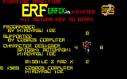 本作は,1985年にコスモスコンピュータからリリースされた,縦スクロールのシューティングゲームだ。プレイヤーは,ロボット「エルフィクス(ERFIX)」を操作して,全7ステージを攻略する。エルフィクスは,ショットとミサイルを装備しており,戦闘中に登場するゲートに入ることで自由にミサイルを変更できる。ミサイルは,一直線に飛ぶもの,ブーメランのような軌跡を描くもの,周囲をぐるぐると回るものなど5種類が用意されており,自分のプレイスタイルに合わせて選択可能だ。