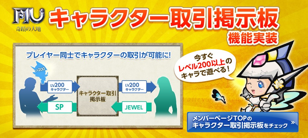 「ミュー 奇蹟の大地」,新たなシステム「キャラクター取引掲示板」が本日実装