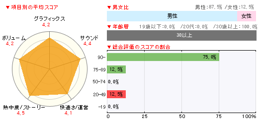 グラフィックス サウンド 快適さ/運営 熱中度/ストーリー ボリューム 5 5 4 4 5 -