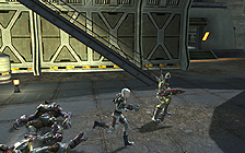 ギャリオット氏が,Tabula Rasaのデモ紹介で念を押していたのが,ハイペースなアクションと,緻密に練り込まれたストーリーである。その概要は,地球を失って移民したヒューマンが,遠い宇宙の惑星群に降り立ち,そこでThe Banesと呼ばれる凶暴な知的生命体との戦闘に突入するというものだ。その星々には,高度な文明を築き上げていた先住民族Elohと,彼らの残した文明の利器や文字なども存在している。