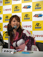 さて,最後になるがゲストとして登場した安めぐみさんにも触れておこう。安さんとゲームの関わりで,セガがドリームキャスト用にリリースしたいろんな意味での超大作「シェンムー 第一章」のヒロイン,原崎 望の声を担当したことを思い出す人もいるかもしれないが,実はハドソンとの付き合いも長く,2000年,2001年の東京ゲームショウのハドソンブースに登場している。今では,「ORICON STYLE」による「結婚したいと思うタレントランキング」女性部門の1位に輝くほどの活躍ぶりだが,ここはハドソンの担当者の慧眼を評価したいところである。