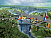 ドイツのCity Interactive社の開発する「Wings of Honour」は,第一次世界大戦中のヨーロッパを舞台にしたフライトシミュレーションゲームだ。とはいえ,本作はアクション性を重視しており,ゲームの作りはマイクロソフトから発売された秀作「Crimson Skies」に近い雰囲気。実際,キャンペーンではストーリーを楽しませるアドベンチャーモードが加味されており,プレイヤーは連合軍のエースパイロットとして数々の戦闘に参加,経歴を積んでいくという内容となる。 グラフィックスは最新鋭とまではいえないものの,3Dで表現された雲や煙はもちろん,地上の民家や兵器,さらには町中を闊歩する人間たちも描いているなど,各オブジェクトの表現は非常に詳細。人間に向かって機銃を掃射することはできないが,プレイヤーの飛行機を狙ってくる対空砲もあれば,地上の施設を破壊するのが目的となるミッションもあるなど,本作はさまざまシチュエーションを楽しめる作品となるようだ。アクション性重視とはいえディテールに関しては非常に凝っており,被弾した機体の一部分が剥がれ落ちたり,翼に穴が開いてしまったりと,なかなか目を楽しませてくれる。 Wings of Honourでは,実際に第一次世界大戦期に活躍した連合軍とドイツ軍の機体を,全部で30機種用意。マルチプレイヤーモードでは,すべてが利用できるようになるという。この時代の飛行機は計器類も少なく,ゲーム化してもそれほど複雑にはならないし,何より適度なスピードの遅さと機関銃を主体とする戦いは,対戦ゲーム向きだといえる。 ちなみに本作は,すでに数日前にゴールド版が完成し,9月中にはイギリスで先行販売される予定。11月頃には,City Interactive社が拠点とするポーランドやドイツを始め,フランスや北欧地域などヨーロッパでのリリースが続くことになる。日本からの入手は難しいだろうが,やや沈静化してしまっているコンバットフライトシムというジャンル。こういう新しい血(企業)の参入には期待したいところだ。(奥谷海人)