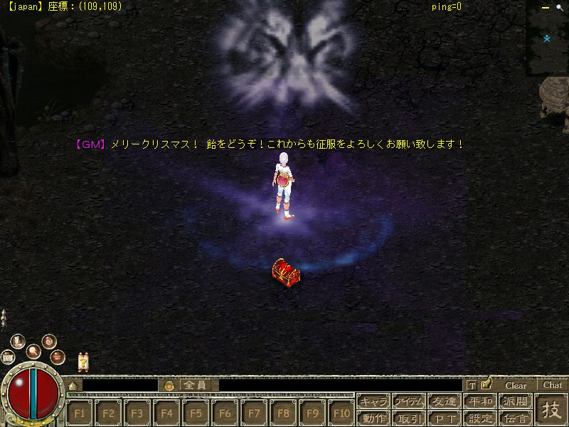 このイベントは,五つの都市を30分ごとに移動しているサンタクロースを見つけ,彼の仕事を手伝うことで,クリスマス帽子や宝石,髪飾りなどのアイテムをもらえるというもの。ただしこのイベントは自動的に参加するタイプではなく,あらかじめ参加申請する必要がある。参加するには,鳴鳳堡城外の水幕洞(350,37)にいるNPC"鈴ちゃん"に話しかけよう。
