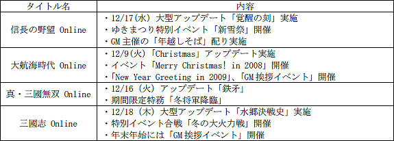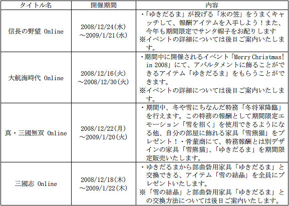 コーエー,オンライン4タイトル合同企画「オンラインゲーム de ゆきまつり」開催