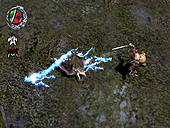 タイトルからも分かるようにBard(吟遊詩人)が主人公ともいえるRPGで,プレイヤーはパーティを操作して3Dで構築された町や地下墓地などを舞台に冒険するというものであった。今では当たり前のようにゲームにBard(吟遊詩人)が登場するが,当時は非常に珍しいことで,BardをRPGに定着させたのは本作の功績が大きいと思われる。1986年には続編として「II」,さらに1988年には「III」,1991年には「The Bard's Tale Construction Set」などもリリースされ,本シリーズはかなりの人気を誇っていた。 E3の会場にこのThe Bard's Taleの復刻版が展示されていると聞いていたので,パブリッシャであるAkllaimのブースに行ってみたが,会場の隅に一枚のポスターがあるだけで(ここでは)公開はなし。……実はAkllaimのブースの奥で一部の人を相手にひっそりと展示していたのである。しかしなぜThe Bard's Taleをこんなに慎重に扱うのだろう。そこそこオールドゲーマーに人気があるのだから,もう少し大きくアピールしてもいいはずなのに……。 復刻版といっても前作から受け継いだのはゲームテーマのみで,完全な新作として捉えてしまって構わないようだ。オリジナルは一人称視点で戦闘はエンカウント方式のターン制であったのに対し,復刻版は三人称視点のシングルプレイ専用の軽快なアクションRPGになっていた。 デモは非常に短かったが,簡単なクエストを見せてもらえた。クエストはBardが酒屋の地下に生息するネズミを倒すというシンプルなものだったが,このBardの行動が実にユーモラス。酒場でお店のお姉さんの胸をつい見てしまったり,巨大な親ネズミの存在に気が付かず,子ネズミを倒して勝ち誇るBardの姿に会場では笑いが巻き起こっていた。 スタッフの解説によると,主人公やNPC達のセリフや行動は無理に格好良くするつもりはなく,なるべく自然なものにした結果がこれだという。ゴシックファンタジーの世界でユーモラスなシーンというとなんだか違和感があるような気もするが,本作に限ってはそうしたことはなく,世界の雰囲気と会話/行動は非常にうまくマッチしていたように思える。これはぜひとも日本語版を発売してもらいたい。 また楽器を使った魔法も少しだけ見せてもらえた。本作の攻略には召喚魔法が重要で,複数体召喚したエレメンタルを従えて敵と戦っている場面が見られた。簡単ではあるが指示も出せるようになっており,シーンによってはちょっとしたRTSのようでもある。3体のペットと共に敵と戦うシーンはかなり爽快だった。ちなみに召喚時には楽器を演奏することになるが,リュートにもいろいろと種類があるようで,違うリュートを装備すれば違う音色になっていた。 E3の展示を見る限り,往年のThe Bard's Taleの姿は微塵もなく残念に思えたが,デモを見て改めて考えると,今の時代に合わせるとこういった進化もありかな? と思えた。 PC版の発売は2005年の1月か2月とのことで,現状は日本語版の発売は正式に発表されていない。いうちに日本語版のアナウンスが聞かれることを楽しみにしていようと思う。(Murayama) →「The Bard's Tale」の記事一覧は,「こちら」