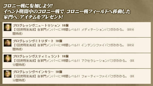 「グラナド・エスパダ」コロニー戦強化月間,参加報酬を入手しよう