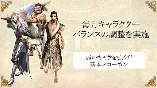 キャラクター間のバランスを調整するため,弱いキャラを強くしていく作業を毎月行っていくとのこと。すでに100人を数え,さらにかなりハイペースで追加されていくので,毎月何人かのキャラが調整されていくことになるのだろう。