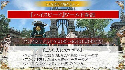 すでに,「テレビゲーム並みの速度で楽しめる」と告知されているとおり,取得経験値などがブーストされた新ワールドが開設される。
