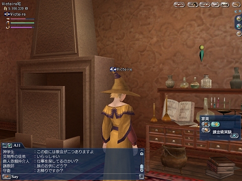 まず,これは錬金術なので,自宅に錬金術の実験台みたいなものを家具として設置し,それをクリックすることで生産のレシピが開いて,生産品が作れるようになります。