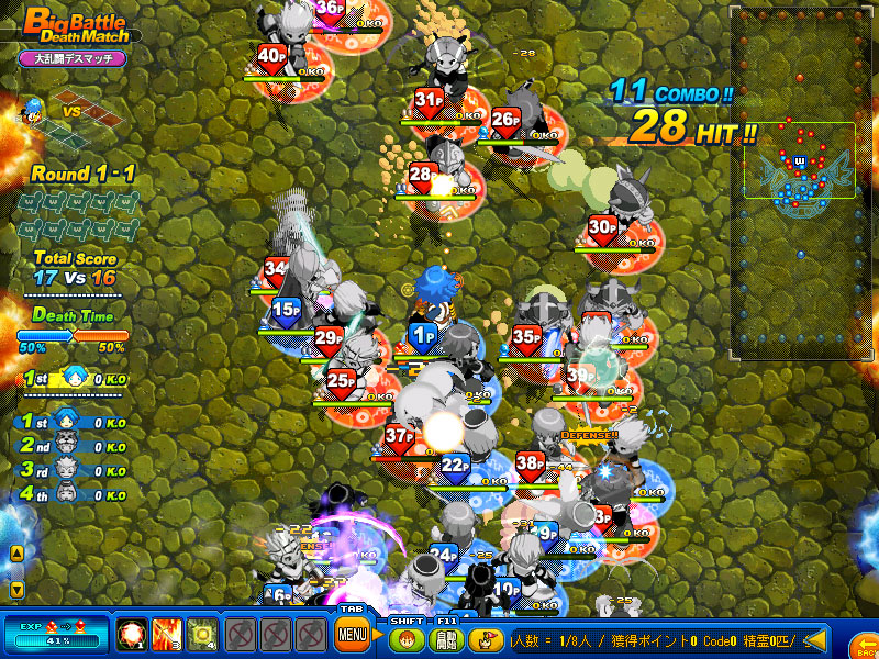 ・大乱闘デスマッチモード……最大20対20で戦うチーム戦だが,一度倒されるとそのラウンド内での復帰はできず,どちらかのチーム全員が倒されるまで続く。