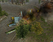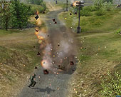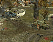 本作には,ユニットを複数選択してAIの自動経路選択を効かせながら行軍するRTSの古典的な操作方法(チームモード)と,兵士や戦車など単一のユニットを個別に操作する方法(ダイレクトモード)の二種類のコントロールモードが存在する。つまり前線までの戦略的な行動は前者で行い,敵ユニットとの距離が詰まったら,兵士一人を選択して工作任務に向かわせたり,敵と対峙した場合はアクションゲームライクに,完全なマニュアル操作を行うといった具合。その場合の兵士の射撃は敵ユニットを指定する方式ではなく,すべてマウスカーソルでアナログに操作してやる必要がある(操作できる)。 またダイレクトモード時は,兵士が個別に有しているインベントリを操作することができ,シチュエーションに合わせて車輌にストックしてある手榴弾を持ち出したり,ときには戦車の機銃を取り外して使用したりといったことが可能になるのだ。 ちょうどその場面を実際にプレイしてもらって,本作のプレイの比重はどちらかというダイレクトモードにあるという印象を受けた。 というのも,一人の兵士を操作して物陰に隠れながら銃撃戦を行うと,割とスムースに敵小隊を殲滅できていたためだ。もちろんこれは設定難度によるものかもしれないが,本作のサブタイトルにもある通り,局地戦は単独でグイグイ進められるヒロイックなゲーム展開となりそうな雰囲気。市街戦では,建造物の窓ガラスから覗くスナイパーをダイレクトモードで狙い撃ちするなどという具合に,本作が要求してくるアクション性もチラホラと垣間見えた。本作にガチガチのRTSプレイを期待している人は,胸に留めておいてほしい。 Soldiersは,欧米で2004年6月に発売される予定。マニア層に訴えかけるユニットのマネジメントとアクション性の高い操作,また派手な戦闘も行える欲張りなタイトルとして非常に期待が持てる一本なので,ぜひ動向を追っておこう。(Gueed) →「Soldiers:Heroes of World War II」の記事一覧は「こちら」 (C)1986-2004 The Codemasters Software Company Limited ("Codemasters"). "Codemasters"(R) is a registered trademark owned by Codemasters. All Rights Reserved Privacy Policy. Website Terms of Use