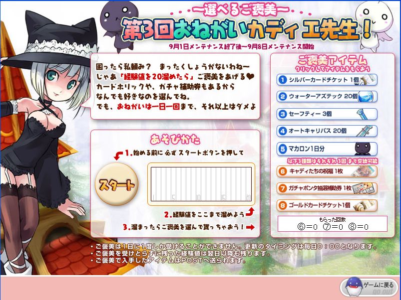 「パンヤ」経験値を溜めて,カディエ先生からご褒美アイテムをもらおう