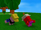 gumonjiは,直方体を積み上げたようなシンプルなキャラクターを操作して,サーバー上に構築された仮想世界で生活を営むオンライン箱庭ゲーム。惑星の規模だけをギュッとコンパクトにしたようなその世界は,"物質量保存の法則"が完全にシミュレートされており,水や大気,さらにすべての動植物がお互いに関連を保ち,現実の世界と同様の生態系を作り上げている。プレイヤーは,土地を所有して栽培に精を出すのもよし,またほかのプレイヤーと協力体制を築いて灌漑工事に励むもよしと,生産スキル重視のMMORPGのように腰を据えて住まうことができる。