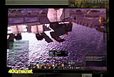 ちなみに船は単純に方向を指示したからといってそちらにスイスイと動くわけではなく,風向きや水の流れの方向,作った人のスキルレベル,使っている素材などに大きく影響されるとのこと。ムービーの1分15秒あたり,船に乗り込んだ瞬間からサブメッセージウィンドウが表示されているのが見えるだろうか。さすがに内容まではこの解像度では判別できないが,ここに風向きや風の強さなどが常に表示されていた。