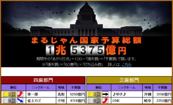 「Maru-Jan」であがり打点を競うイベントが開催。テーマは“国家予算”