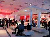 赤はATARIのブランドカラーということで,ブース内の最初のスペースは何もかも赤くライトアップされており,壁に設置されたモニター以外は,なんか不思議とどうでも良くなってきちゃうような仕掛けとなっていた。かなり心理的に計算された空間演出といえる……かもしれない。 壁に設置されているモニターでは「DRIV3R」のムービーが流されていた。ATARIブランドの作品は今年も数多く出展されているのだが,それらの多くはNVIDIAやATIブースなどに展示されており,今年ATARIブースに置いてあったのは,「DRIV3R」のみであった。 欧米では2004年10月1日発売予定(コンソール版は6月21日)の,バイオレンス系カーアクション&アドベンチャー「DRIV3R」。累計1200万本以上のセールスを誇る化け物タイトルのシリーズ3作めで,すでに情報自体はさんざん出ているので,ここではざっと簡単に説明しよう。 主人公のターナーは,巨大な自動車窃盗団の組織に潜入捜査する刑事である。プレイヤーはこのターナーを操り,30以上のミッションを達成していく。 搭乗可能な自動車などは70種類以上収録されている。自動車を使ったミッションは,派手なカーチェイスや慎重さを要する尾行など,さまざまな内容が用意されている。また足を使って街や建物の中を捜索したり,激しい銃撃戦を行う場面もある。刑事というのは大変なのである。 主人公役のマイケル・マドセンを始め,ミッシェル・ロドリゲスやミッキー・ローク,イギー・ポップといったハリウッドの大物がボイスアクターとして参加していたり,あのリドリー・スコットが監督した実写ムービー「Run the Gauntlett」を公式サイトで公開して話題を集めたりと,プロモーションに半端じゃない資金を投入しているのも本作の特徴だ。