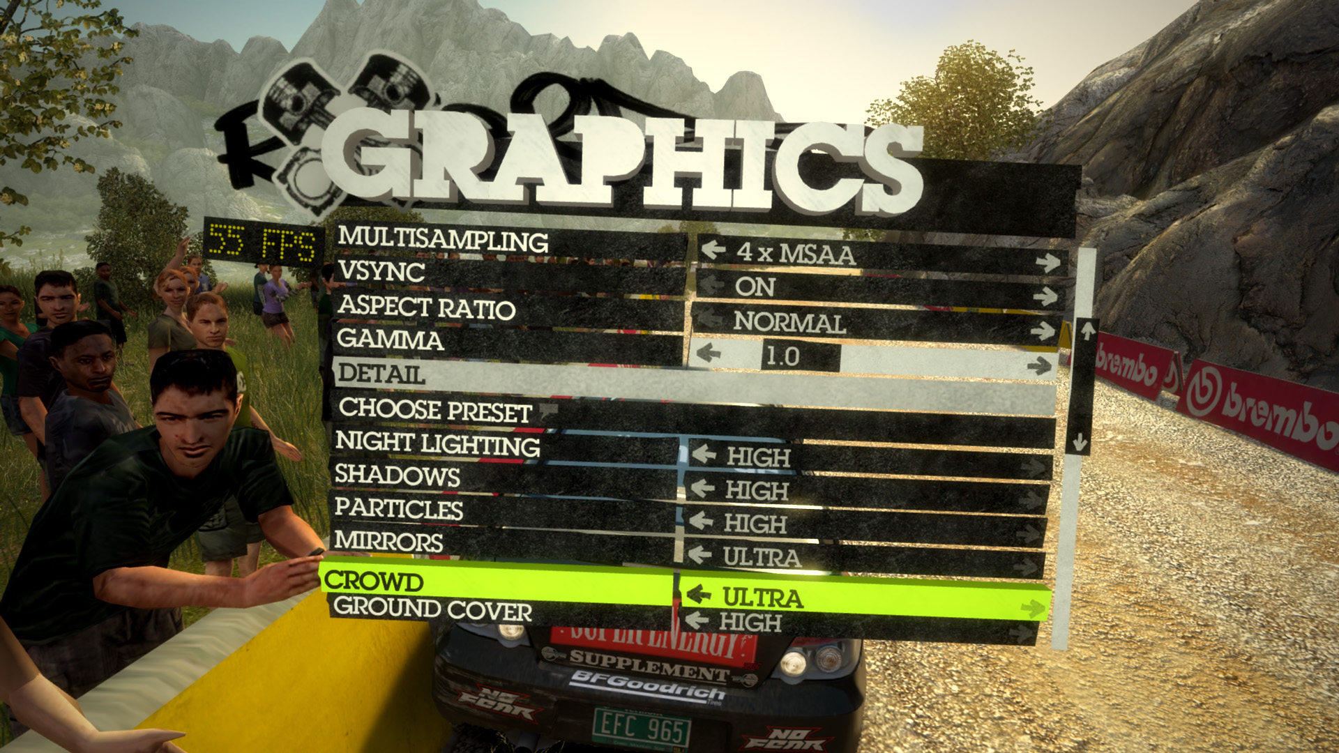 これは,道の脇にいる群衆のLOD(Level Of Detail)にまつわる設定。設定範囲は[NONE][LOW][HIGH][ULTRA]の4段階になっている。